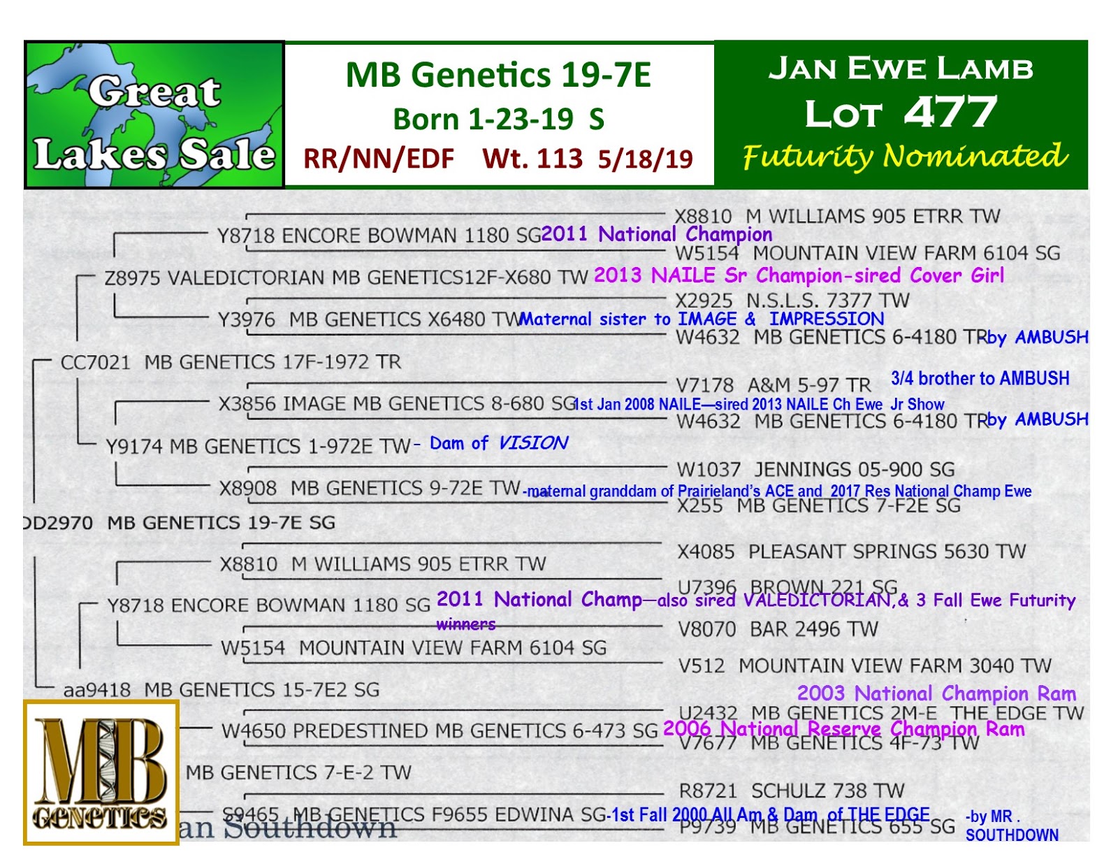 Dam – MB Genetics 17F-12KE Dam's Sire – MB Genetics 14-57V